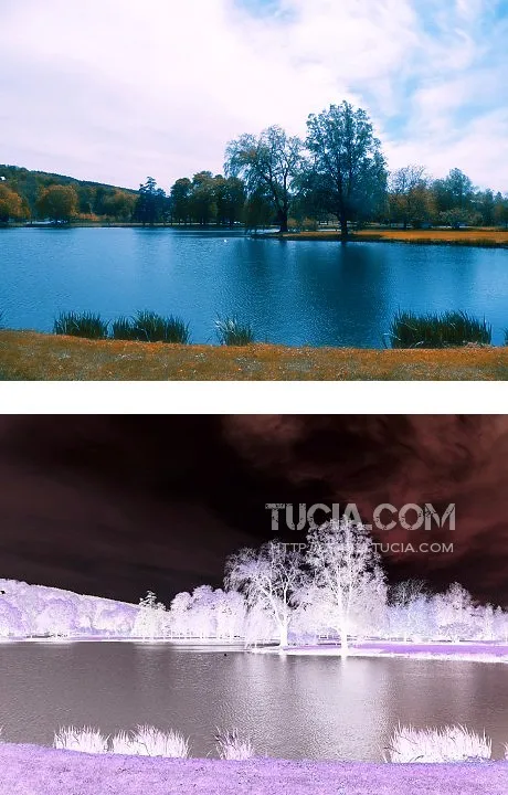 第一个秋天的感觉 草变黄了 湖与天空好像太蓝了(貌似冬天已去 春天就要来的感觉)... 第二个貌似不像是夜景啊.. 反相的 有点像妖怪来临的感觉...