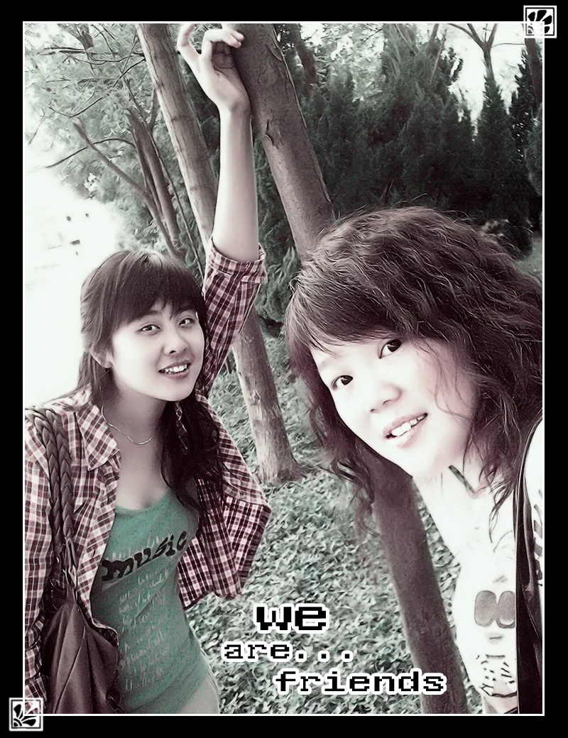 这是我们两人的合照 基调:欢悦明快的 背景:稍作调整 艺术化:轻微艺术化