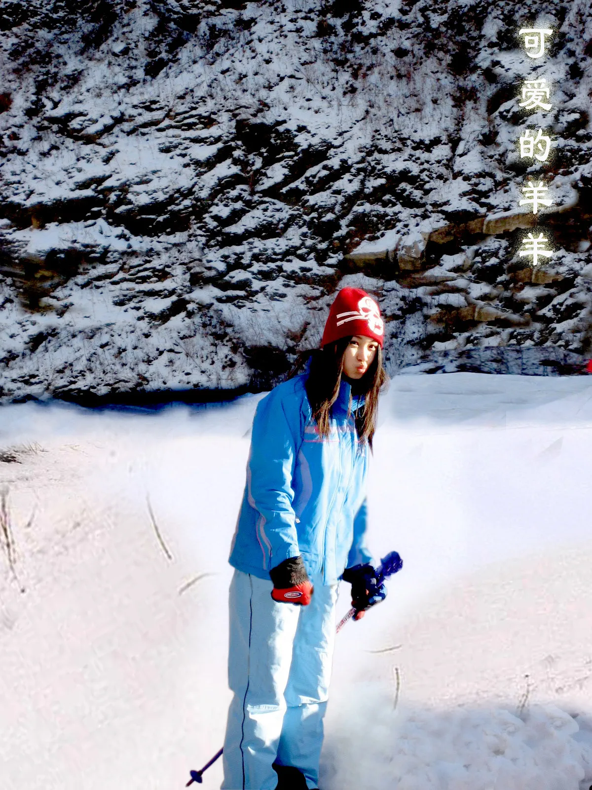 能否将旁边的人隐去 突出人物 中间的电线能否去掉,(难度好像比较大) 加点文字吧(写“可爱的羊羊”) 谢谢