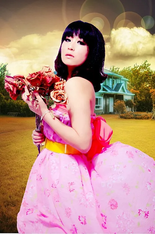 求精修调色,桃红色的裙子鲜艳一些哈,谢谢了! 美化人物脸部 美化身材/体型 换一个好看的背景