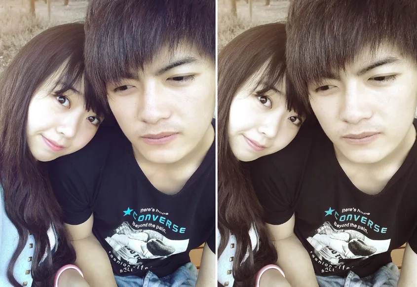 有感觉的大师接,谢谢啦^_^ 去斑,女生修脸型,男生眼角向上稍微提一些。 基调:典雅唯美 艺术化:轻微艺术化 美化人物脸部
