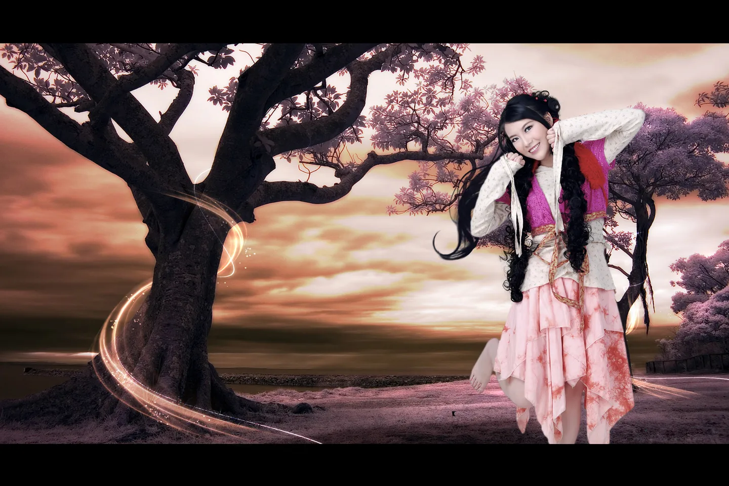 眼袋帮忙去一下~~~皮肤光泽~~~ 背景帮忙设计一下~~ 辛苦 ~~~谢谢啦~~~