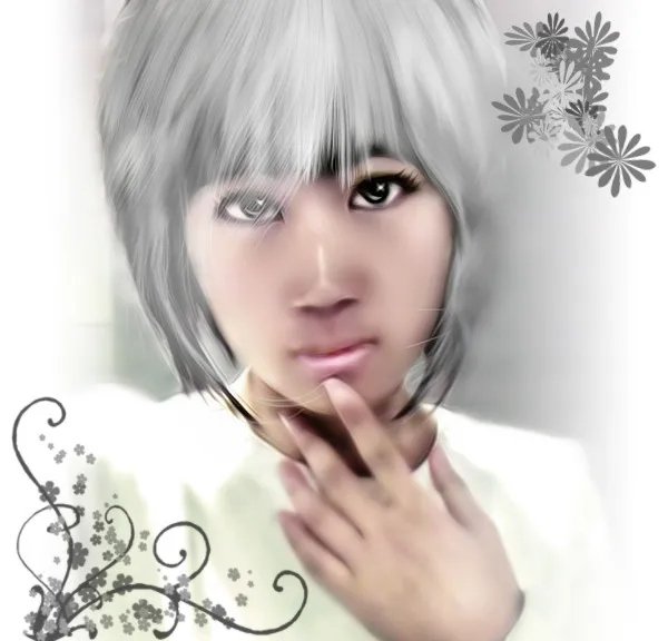 请把雀斑去掉、把肤色调亮、换一个背景,期待大师的发挥!!!谢谢啦~~ 基调:严肃冷酷 艺术化:深度艺术化 背景:稍作调整