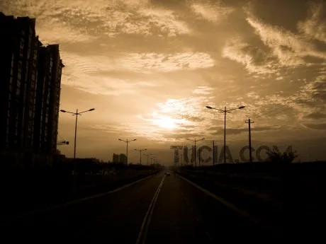 这张照片是我自己拍的,那本人的意思是把照片中间的那天路修到与太阳链接上