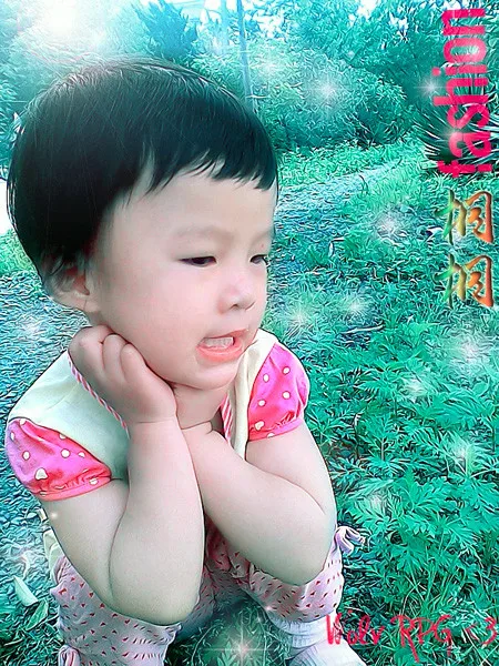 我给小妹妹拍的,可是太模糊,颜色太灰,指定372170300帮我美化,喜欢她,手工不错。宝宝的形状不要改,嘻嘻