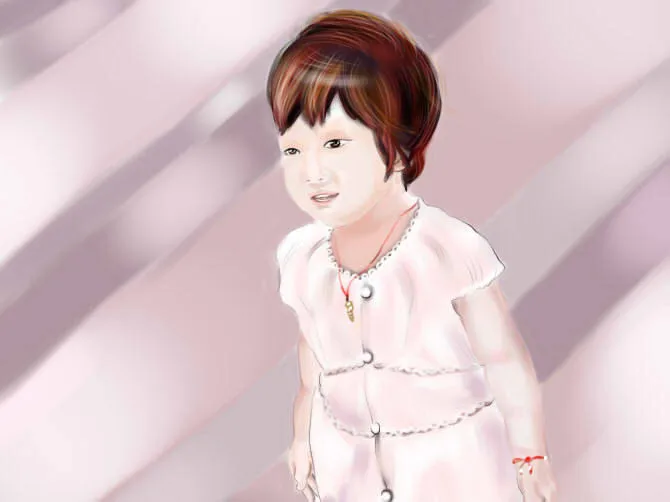 谁帮忙画这张照片吧,我想要漫画、插话性的,就是头发或者脸型都用很自然的线条,但和原图比基本上差不多,再换个好看的背景。先谢谢啦!