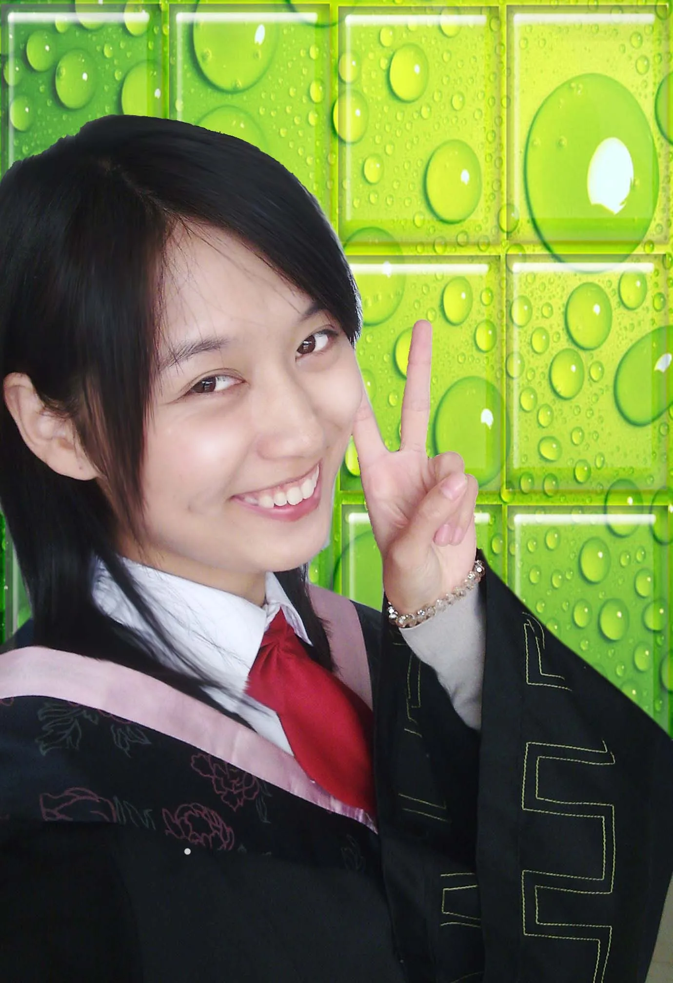 美化人物脸部, 基调:欢悦明快的 艺术化:保持真实性 把后面的人给去了吧,柔和些,这是今天拍的学位照,谢谢高手了笑得有点放肆,囧得啊