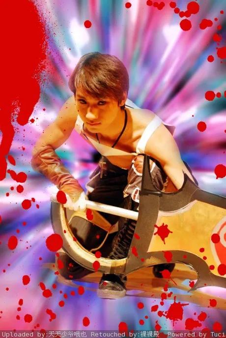 这个是我表演的时候摄影爱好者拍的,cos的是游戏卓越之剑里面的裸男苏浩,呵呵,话说我手里那把剑可真是个重啊,我还要一只手举起来。至于想要的效果嘛,我也不知道适合什么样的,希望某位高手能给弄的艺术化,尽可能的艺术化,谢谢,谁来接啊,感激不尽啊,5555555555