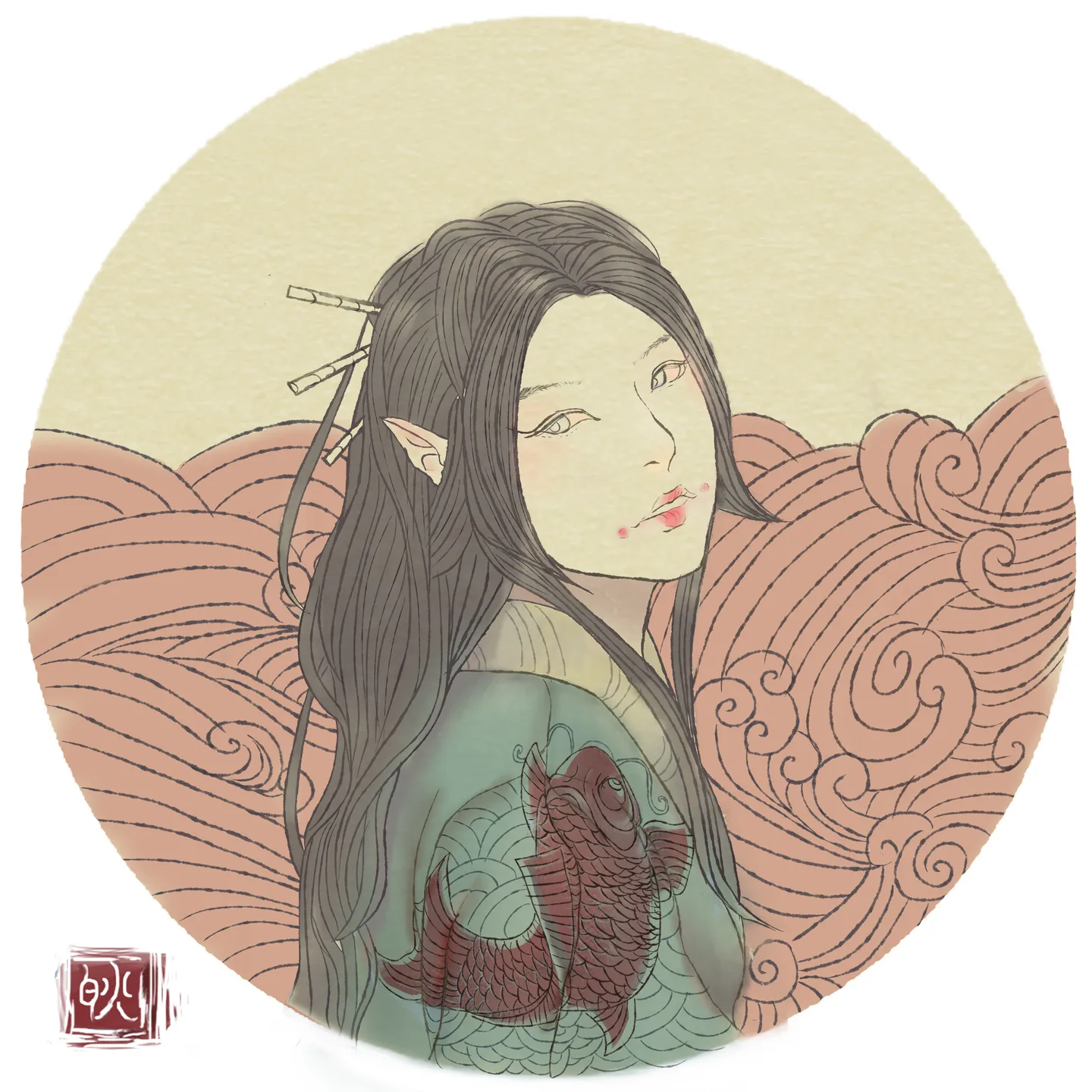 风格好独特啊,好好看,笔触挺细致的感觉。不过这鲛人有点中性化了……排队求图图求画啊大神