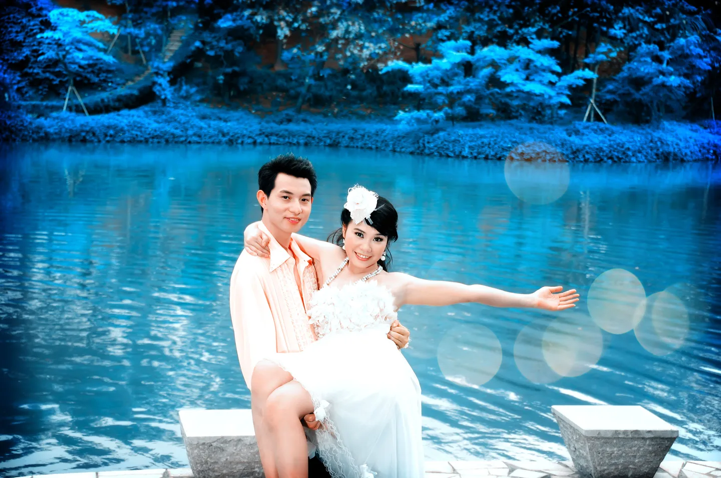 简单将背景的色彩朦胧一些,两个人的肤色修一下,然后将女孩的手臂修瘦一点.