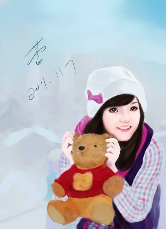 啊啊~~我也画过这张照的说~你看你看,跟我画的比起来,你的就是完全写实肖像啊~ =。=