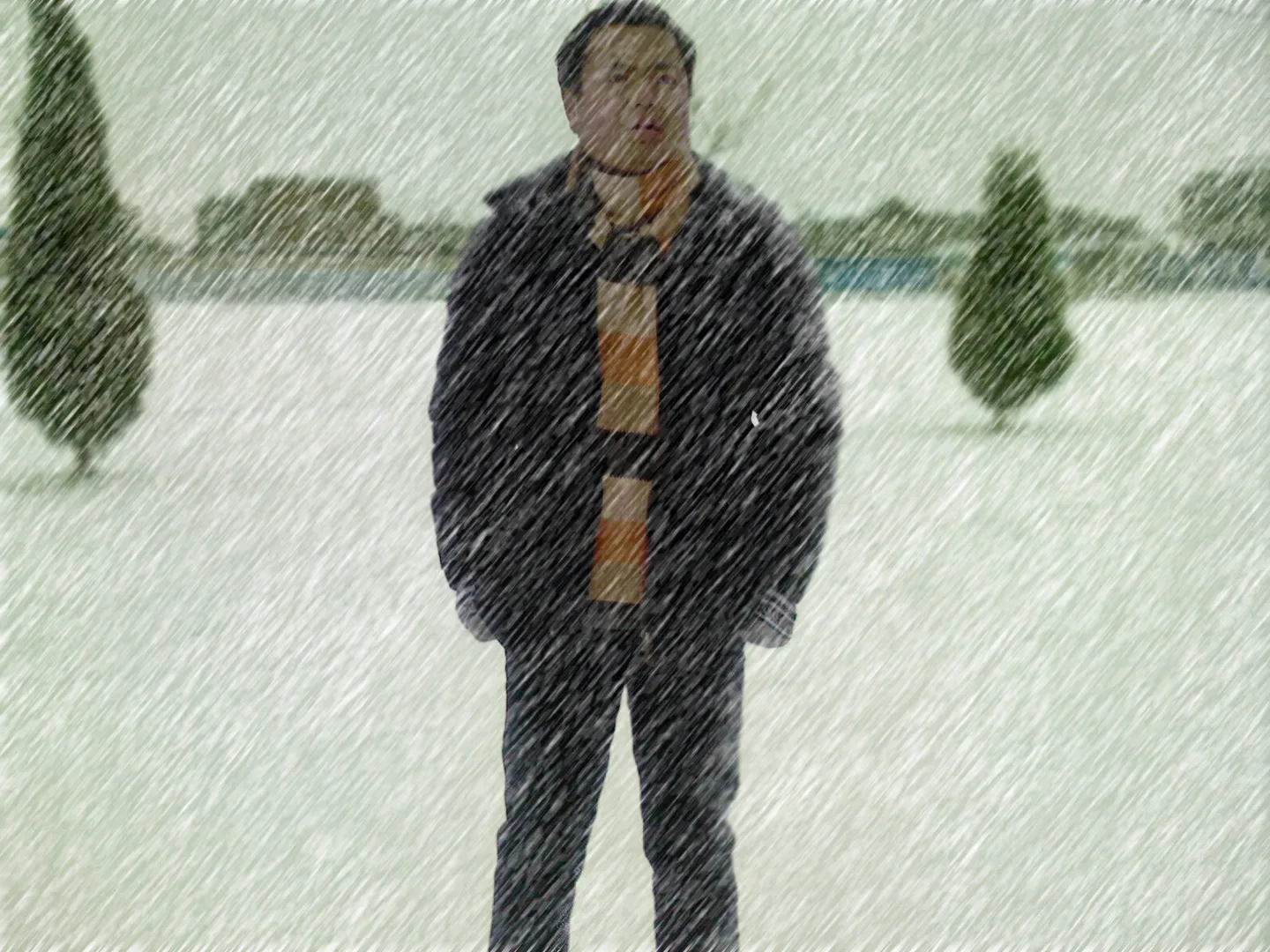 温馨点,飘雪的感觉,建筑物可朦胧点。
