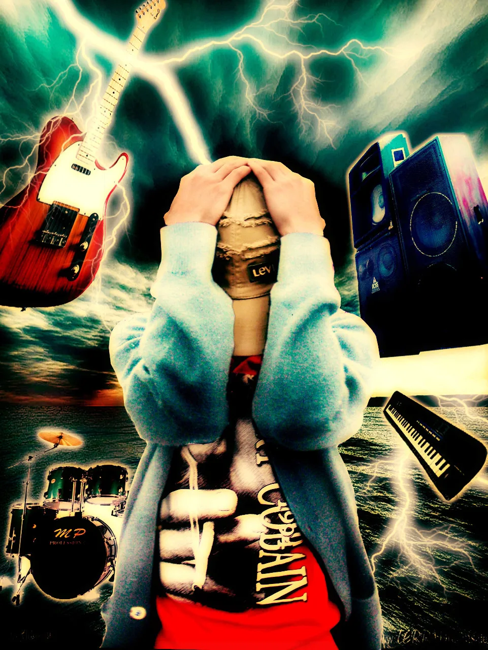 背景处理掉 希望能有个喜欢摇滚乐的烘培师来处理,T恤中吸烟的人物是Kurt Cobain 整图处理出一种摇滚Grunge气质