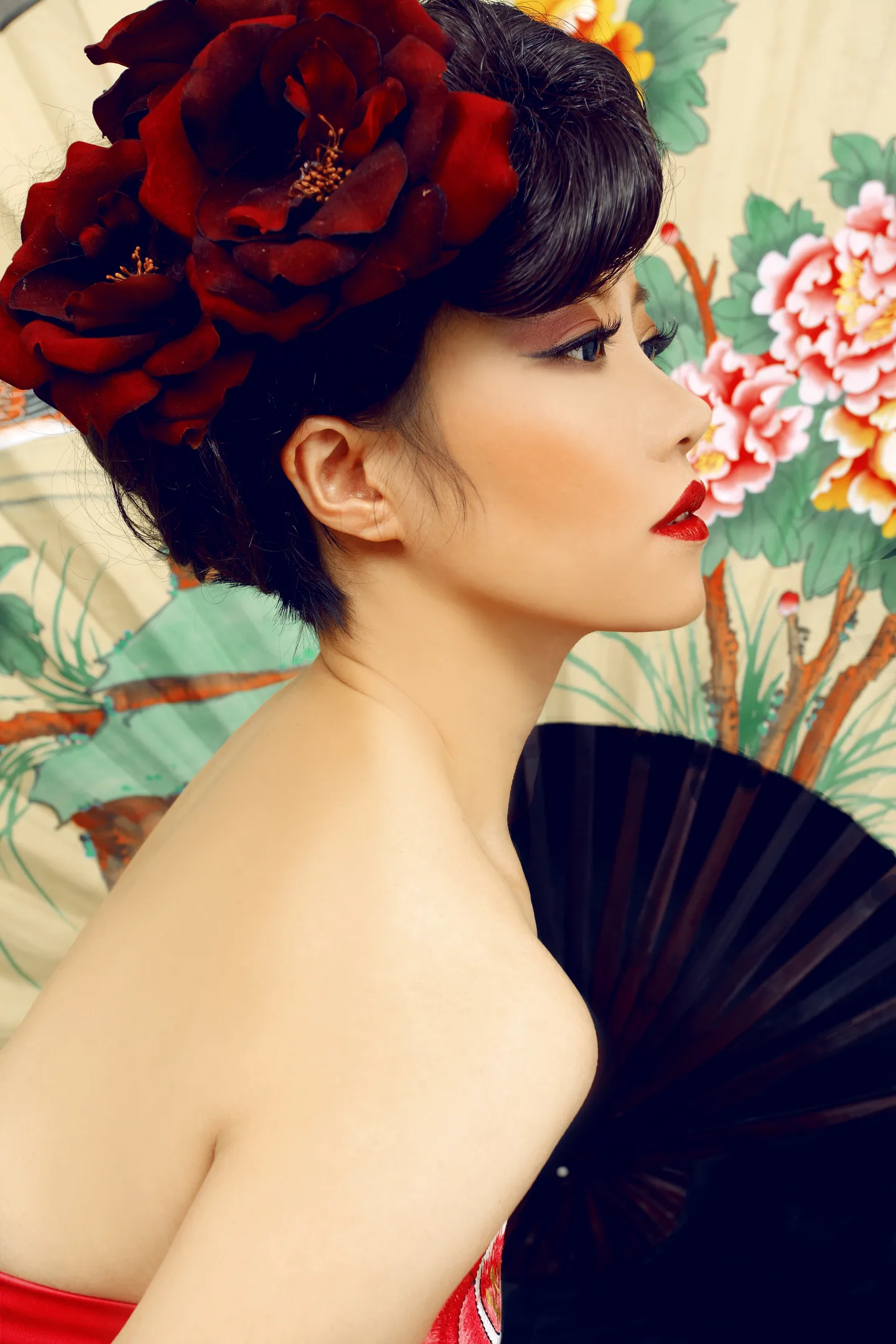 去掉面部瑕疵、增强轮廓感、妆面色调对比增加妖媚感,画面质感加强