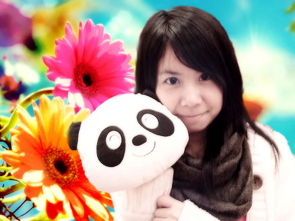 麻烦哥哥姐姐帮我把肤色调白一点好看一点,再换个好看的背景...如果不会很麻烦,手上的那只熊猫可以把它改掉吗...谢谢了...