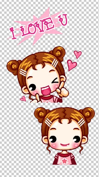这张是GIF 图片有两帧 分别把第1帧内的女孩和第二个帧内的女孩和LOVE字样抠出来构成两张新的图(就是去掉白背景 不要任何背景色 ,只有女孩实体的两张图) 谢谢! 用途: 把抠出来后的两张图做一张新的GIF图