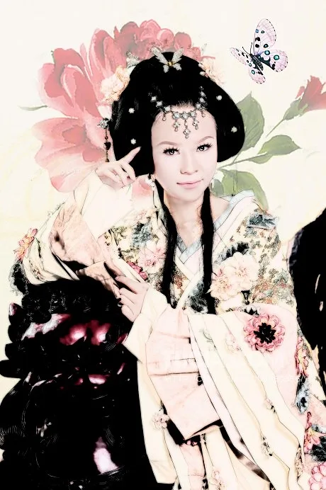 请做一下设计 给人物换一个好看的背景,添加一些装饰 基调:典雅唯美 艺术化:轻微艺术化 谢谢~