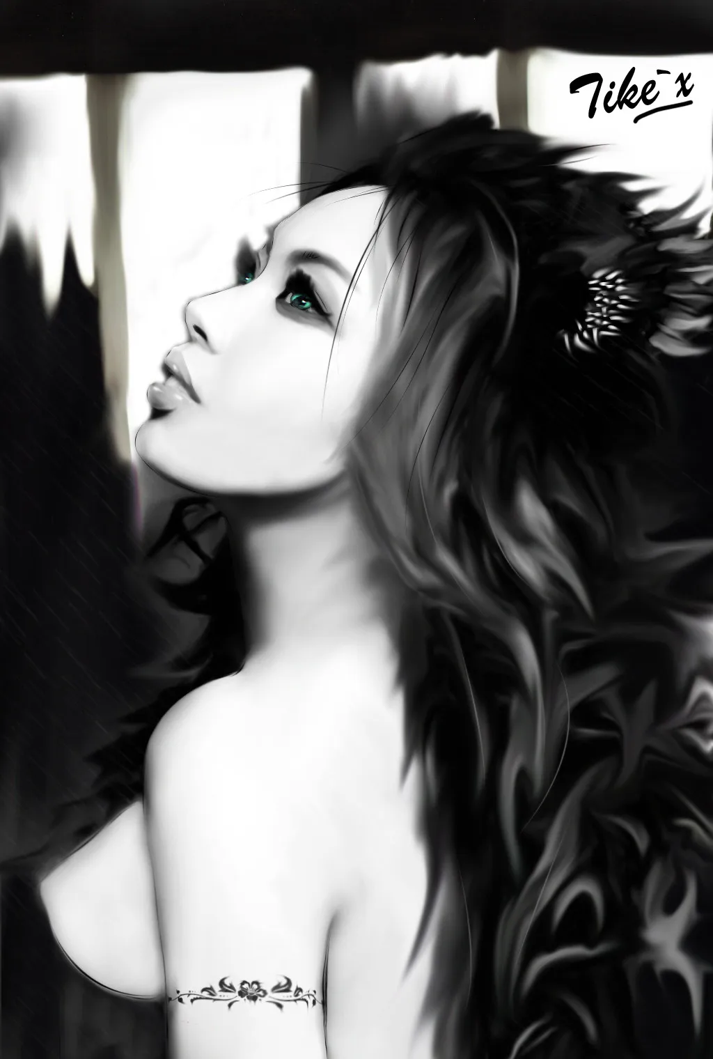 非常非常漂亮,但是我也觉得耳朵旁边的头发涂抹的好像多了点,还有手臂上的纹身淡点更好点,肩膀和胸部连起来,感觉白的多的多,再处理下更好点。不知道我说的可对?? 关注着--