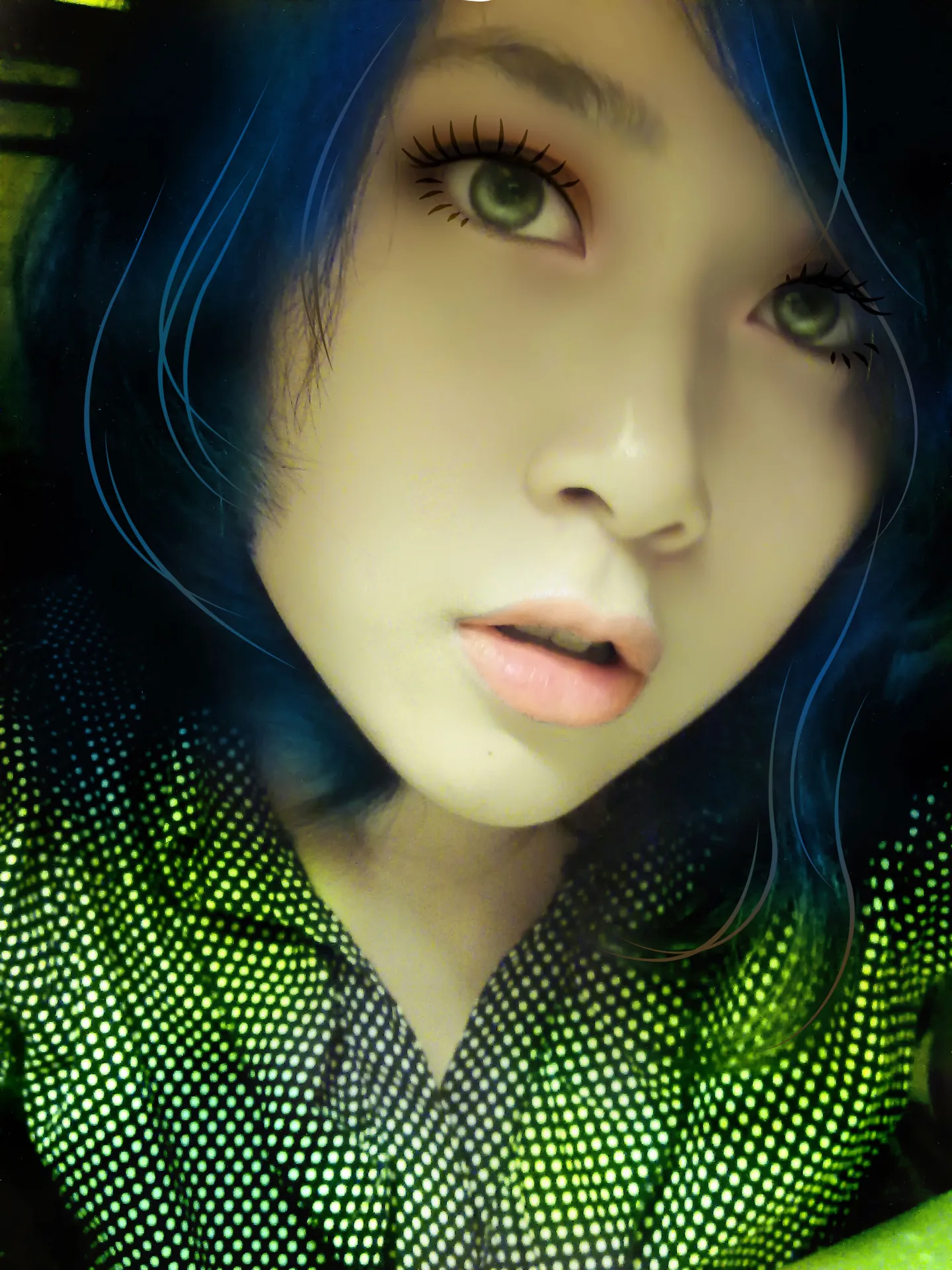 修饰面部瑕疵,调整整体色调,突出眼神。企图达到性感的效果。