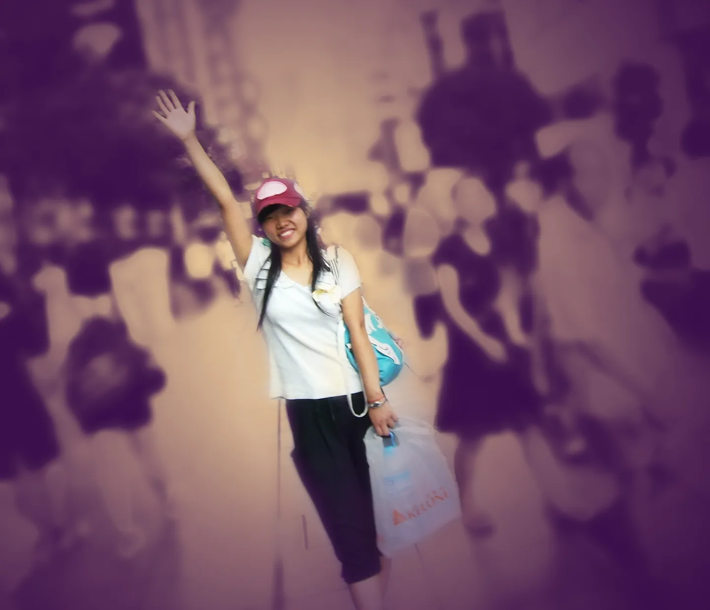 模糊周围吧,突出人物哦