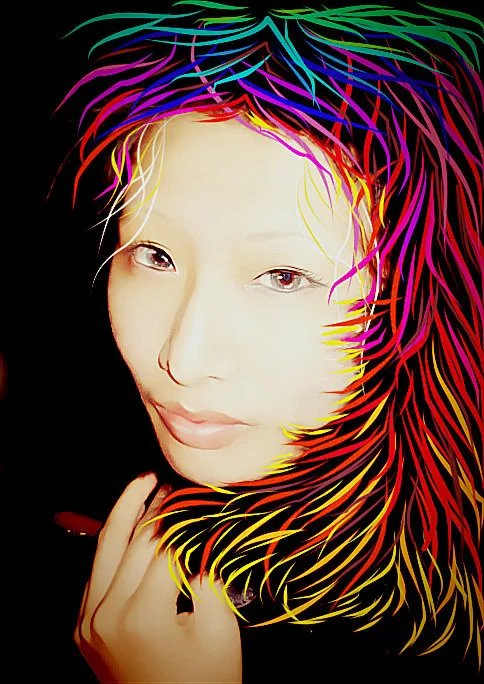 淡眉淡眼的,轻轻的笑的容。真好看。要是头上的装饰再柔些,是轻 轻柔些。更符合整个意境。装饰太锐了我想。