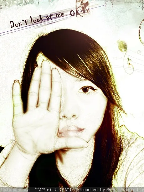 背景杂物去掉 色调除了淡淡的就好 如果没什么创意 可以用可爱的字体在手上写些可爱的字!英文也可以! 例如“别看我!”等等等等!亲发挥下吧!