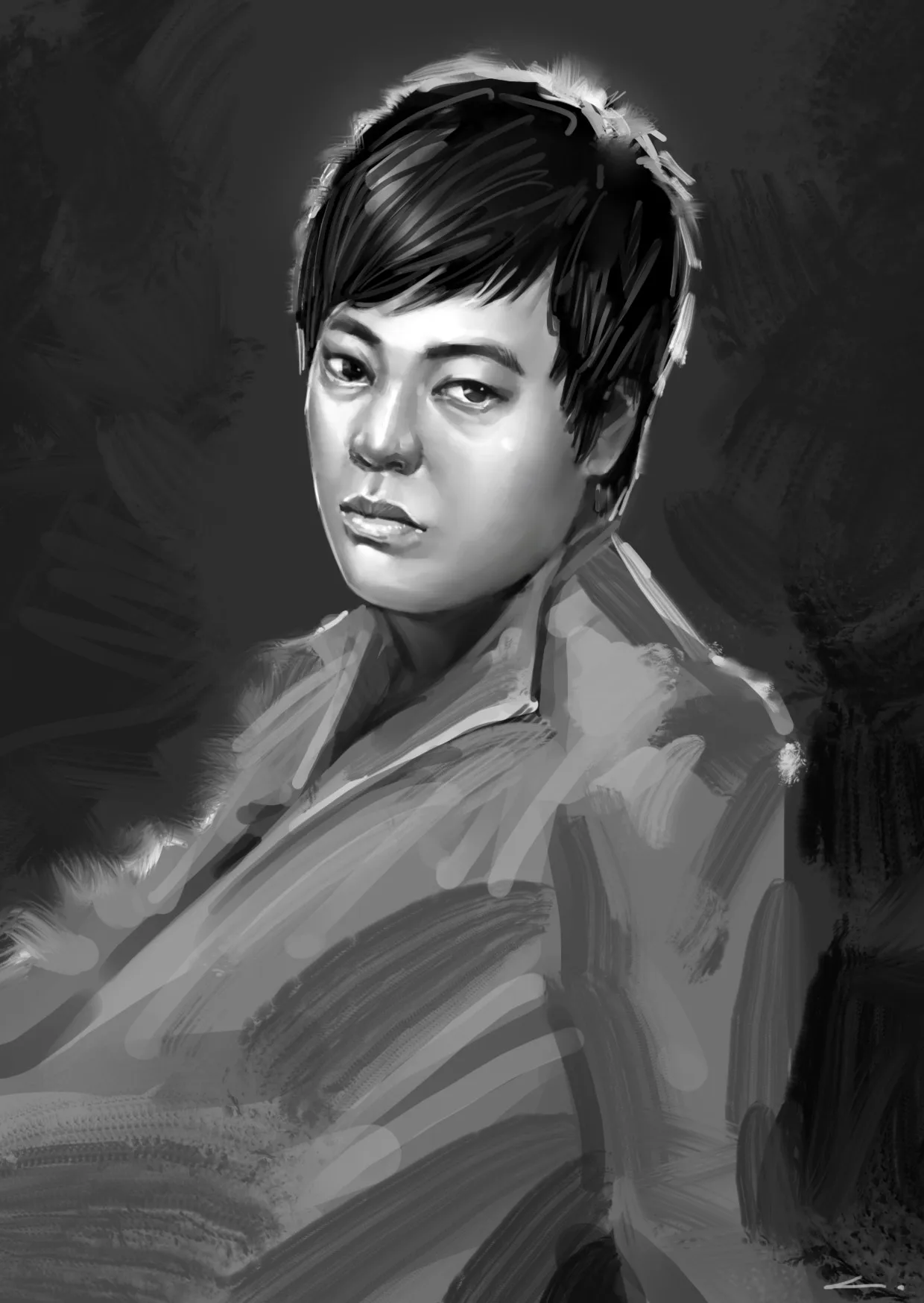 哈,眼睛画大了点,靠后面那个眼睛和我一个毛病,没进去,大了亮了点……
