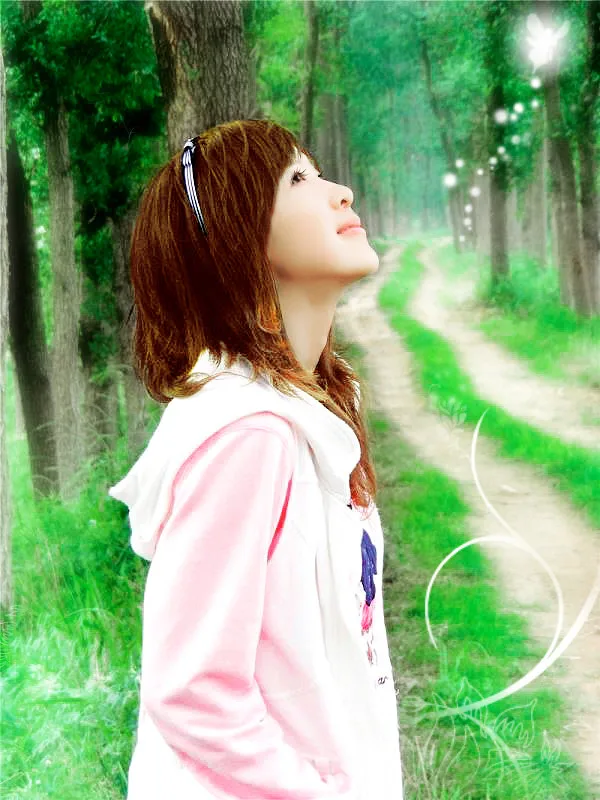 臣臣,来麻烦你了~这张意境挺好就是人丑~哈哈脸太扁了~帮我修饰一下吧。还有头发不要两种颜色换成褐色比较好。保留背景做的漂亮一点~可以加文字。。。可能要求多了点,臣臣不要嫌我烦~嘻嘻 先叩谢!!!期待。。。。 基调:典雅唯美 艺术化:保持真实性