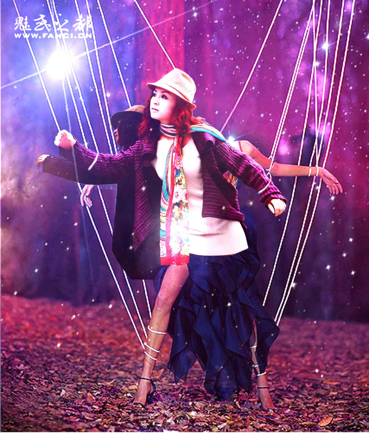 原图中,她后面是个玻璃。。。
