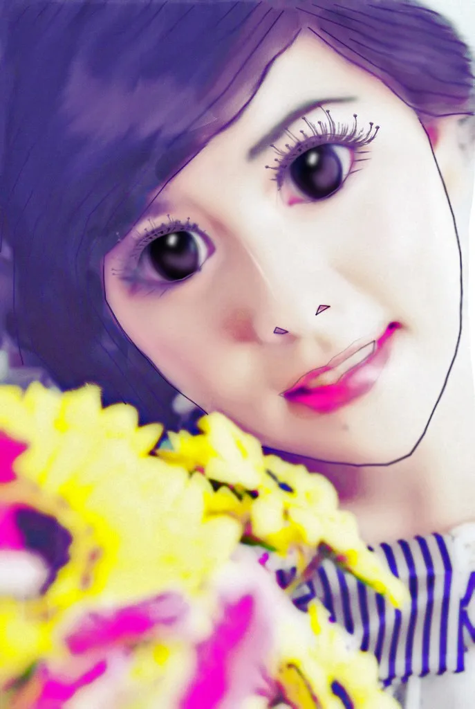 脸上的轮廓线太突兀了,颜色换下,再细一点浅一点