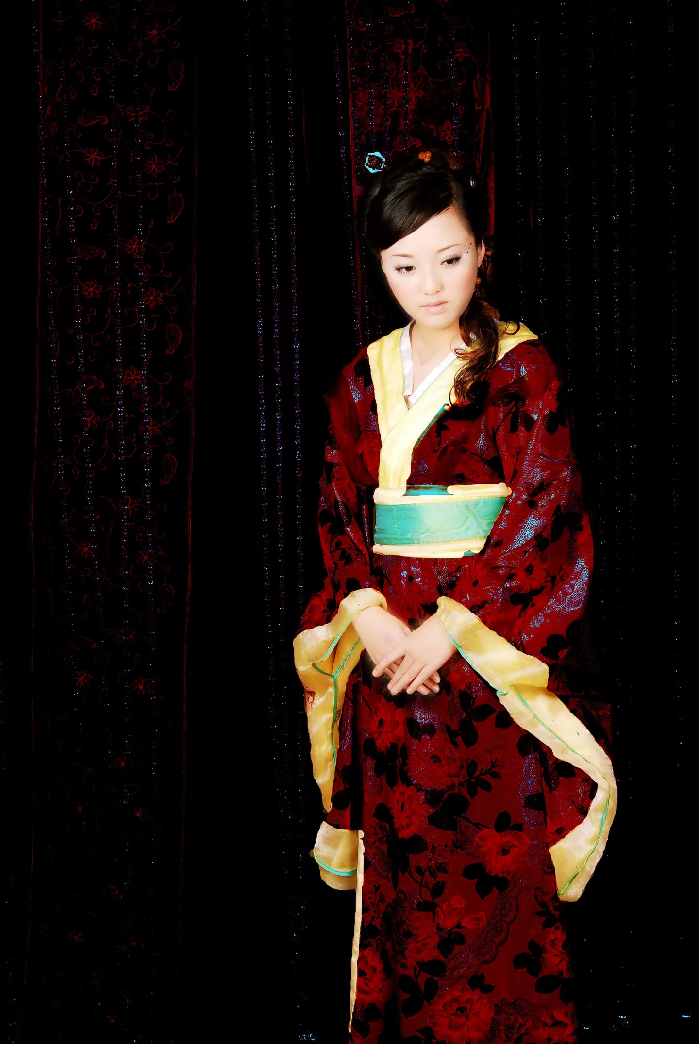传了n久~汗个先 请把整体颜色改成黑色调 只把人物留彩色,可以的话~请把衣服改成深红色 万分感谢