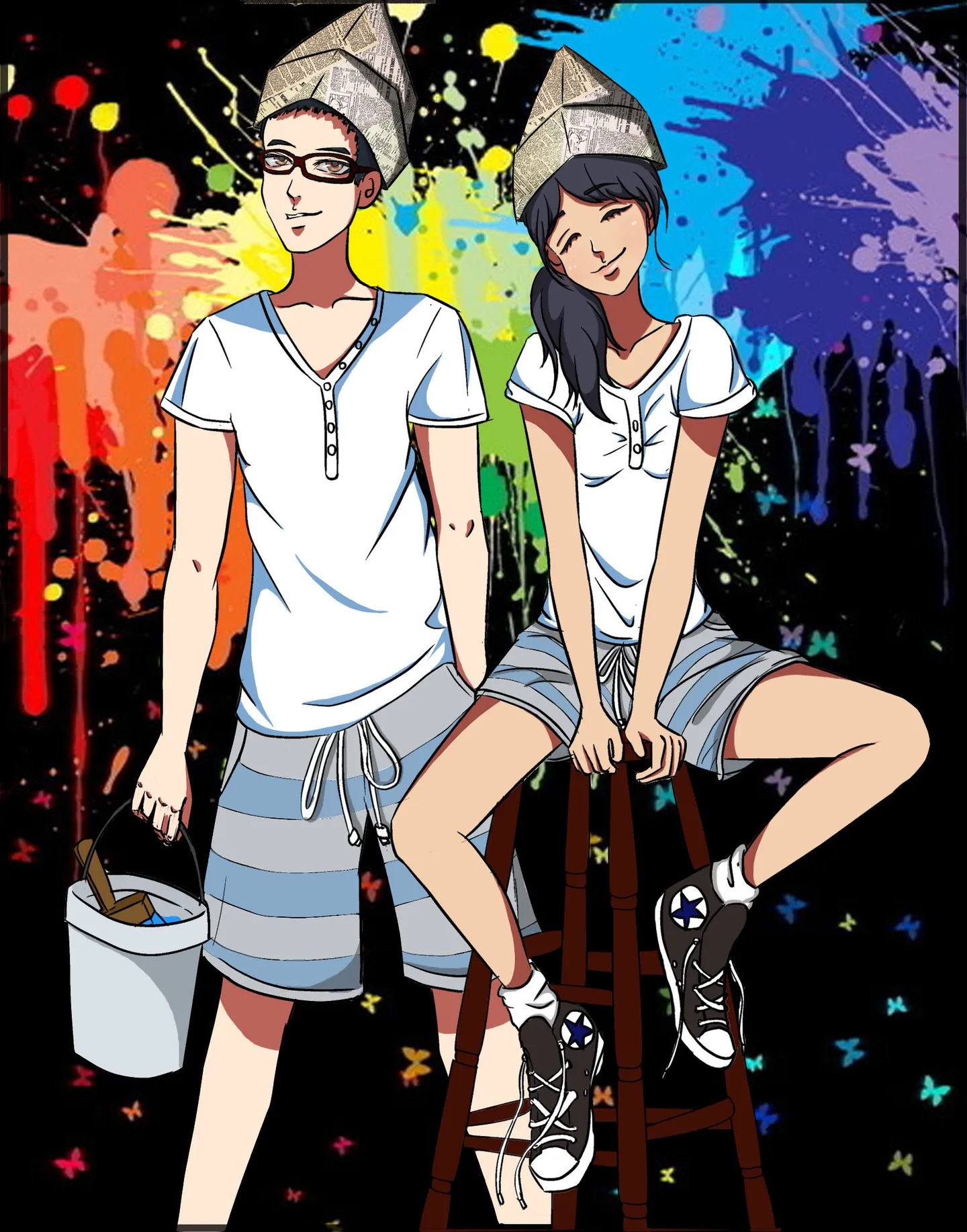 求手绘~求把俩人画在一起~求情侣服~求内容跟装修有关~~大恩不言谢~!