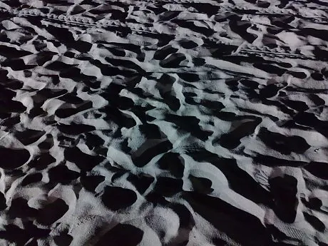 夜晚的沙滩~~人们走过的脚印