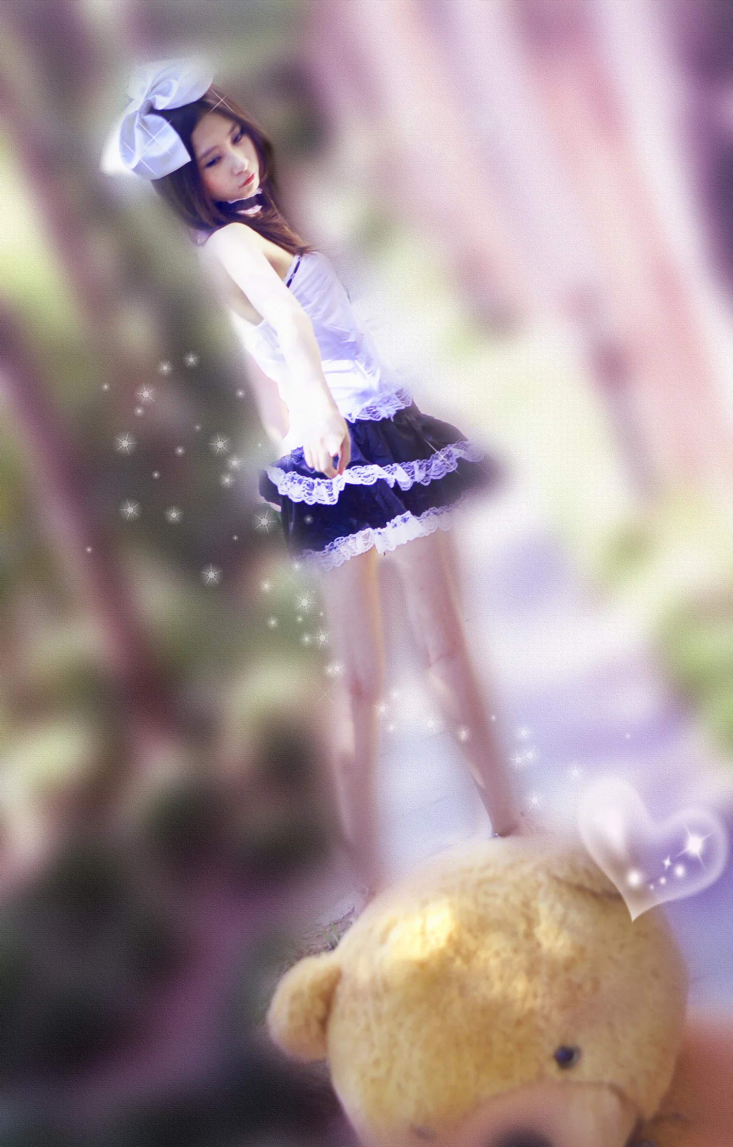 把腿修一下。觉得有点小粗。 色调一下,背景色调很乱 然后人能不能弄得白嫩一点, 我想要萌一点的感觉 哪位设计师有爱帮忙接下啦~~!