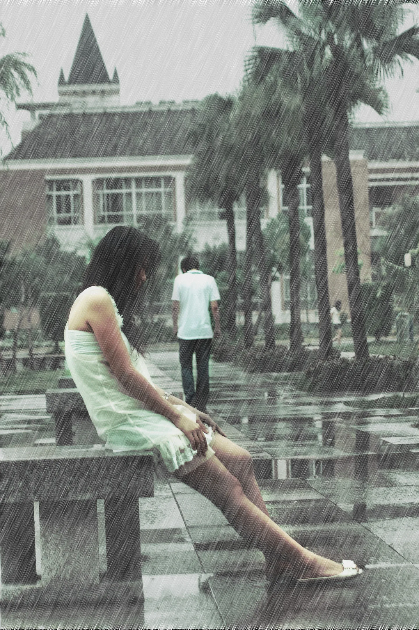 (*^__^*) 嘻嘻……,建议把第三者去掉,就是很远的那个女的,然后女主角脚边放一把掉落的伞,貌似会更完整一些。