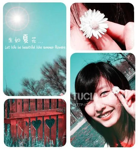 55.. 哪能一笑变单眼皮。。 不管啦 大师们调调色,换个背景就老嗲了~ 嚎~~ ^^ 美化人物脸部 给人物换一个好看的背景 用途:娱乐 基调:欢悦明快的 艺术化:轻微艺术化