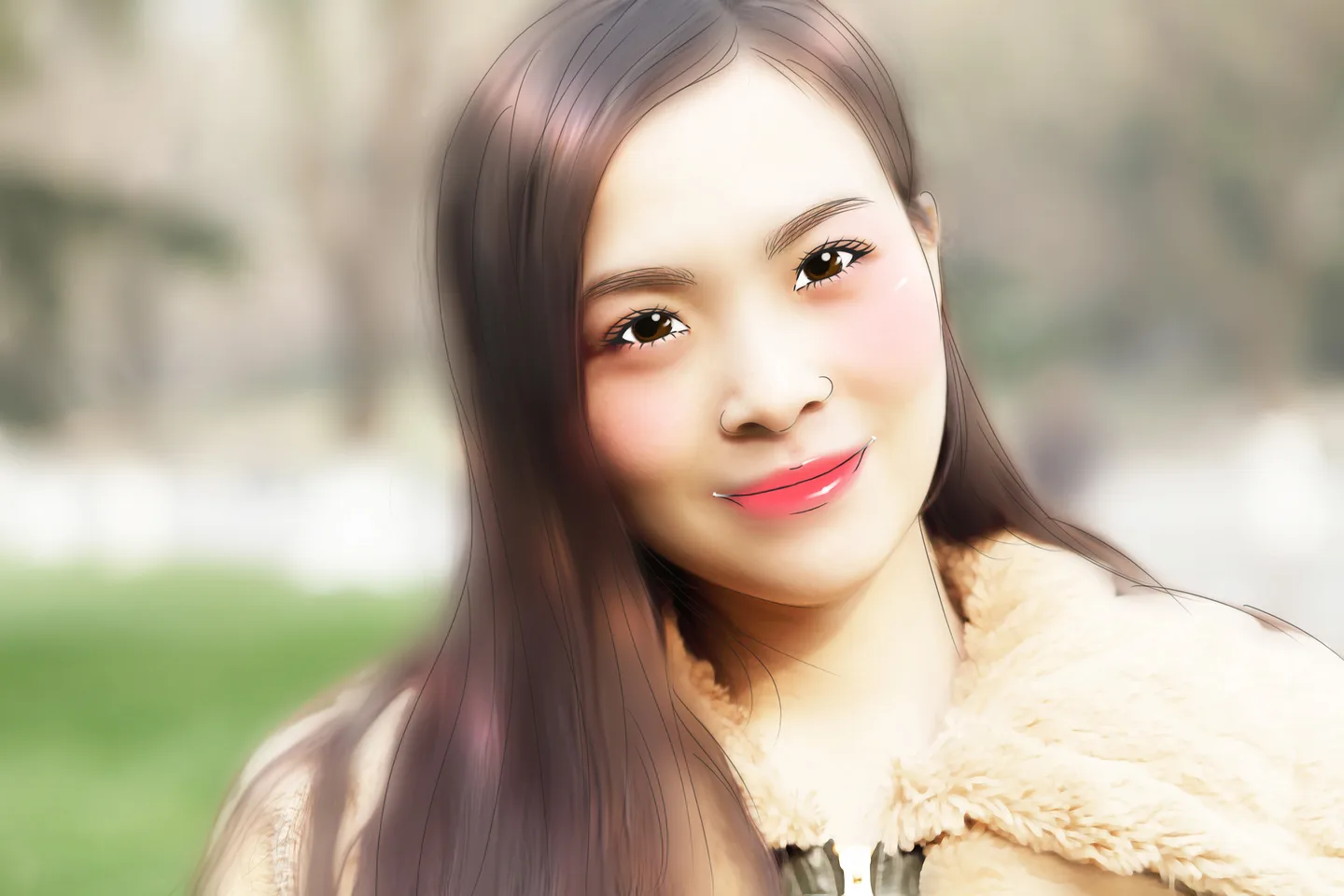 感觉腮红有点过了,口红这么画显得嘴巴有点歪 (表情)