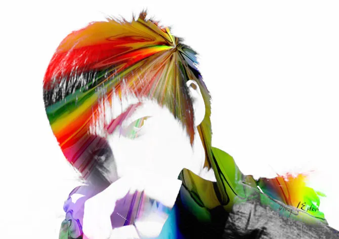 底下去色,上面一个渐变,稍微调整一下,用了哪个混合选项忘了,一个一个试~~