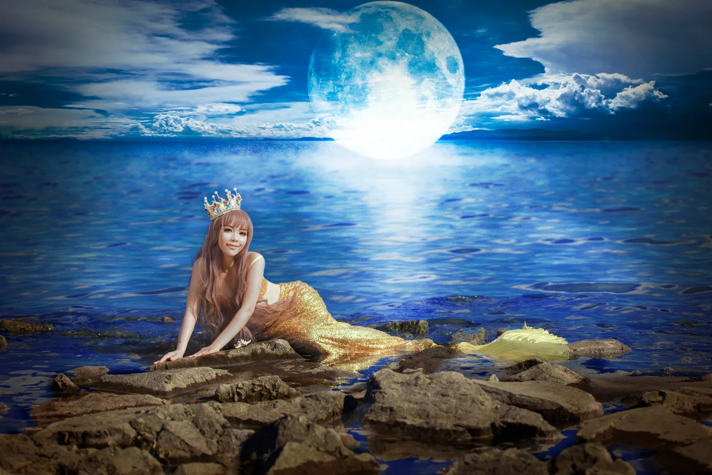 海水好蓝,月亮好大,超级美~~~打滚求图