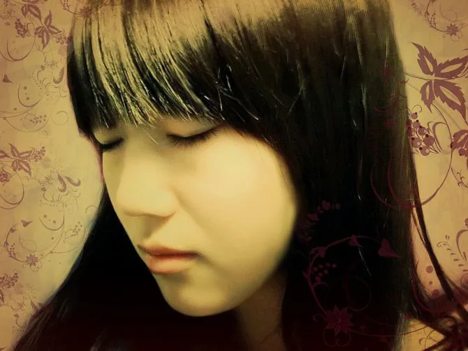 美化人物脸部:请把脸部的管光线调柔和,睫毛加长,鼻子旁的那个纹路消掉,头发尽量变柔顺,最好没有立起来的碎毛毛 给人物换一个好看的背景:尽量要复古的,最好有那种很繁复的花纹 用途:娱乐 基调:典雅唯美 艺术化:保持真实性
