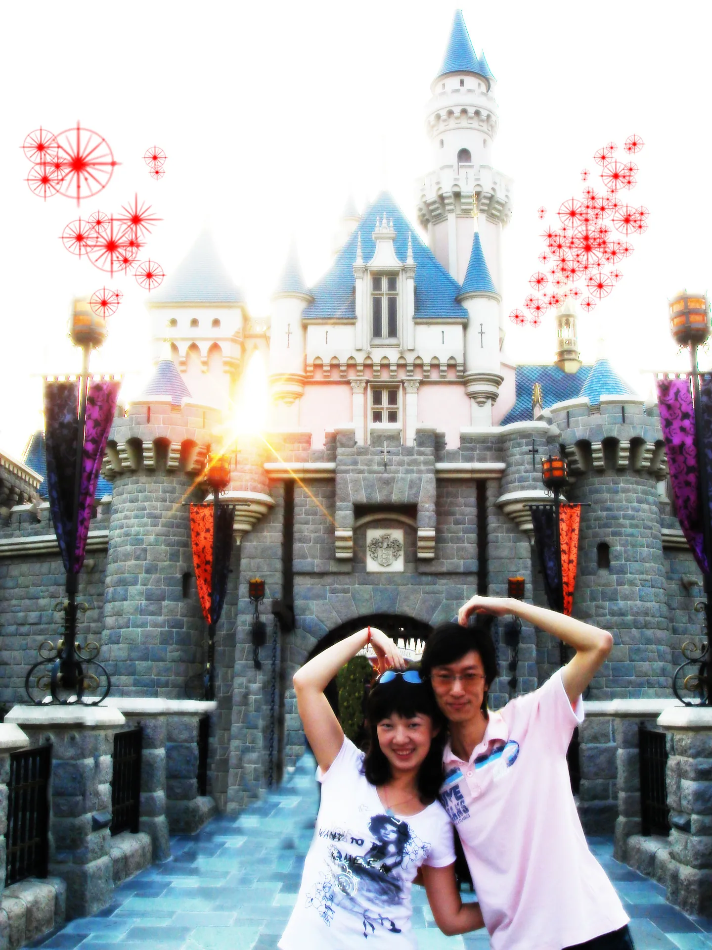 城堡上的一缕阳光请保留 我们俩突出一些,如果能美化一些更好 请把多余的游人去掉 谢谢烘培大师! 基调:典雅唯美 用途:家庭纪念 背景:基本不变