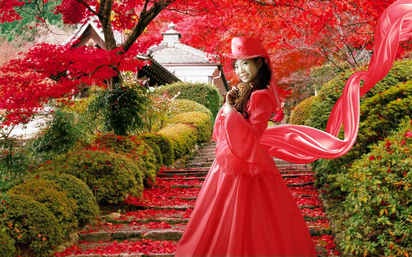 那个背景的红色跟衣服红到一块了。换成橙红如何?