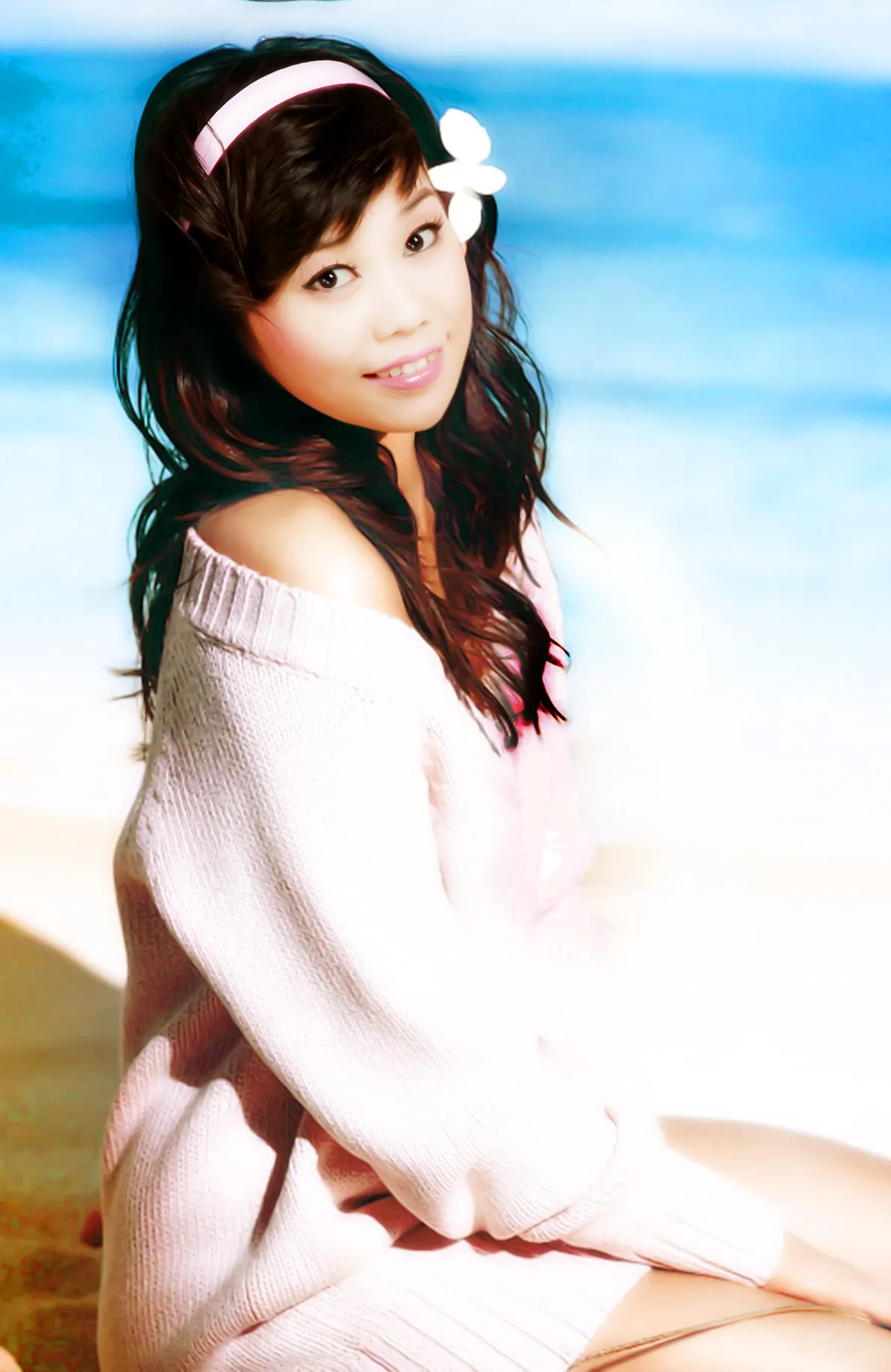 适当改一个长发和衣服.纯真一点,但不用改大眼睛啦,因为一改又不像本人啦,调下背景,一定要半照.