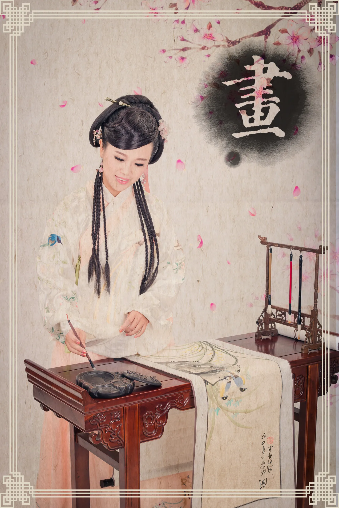 执笔作画的大家闺秀