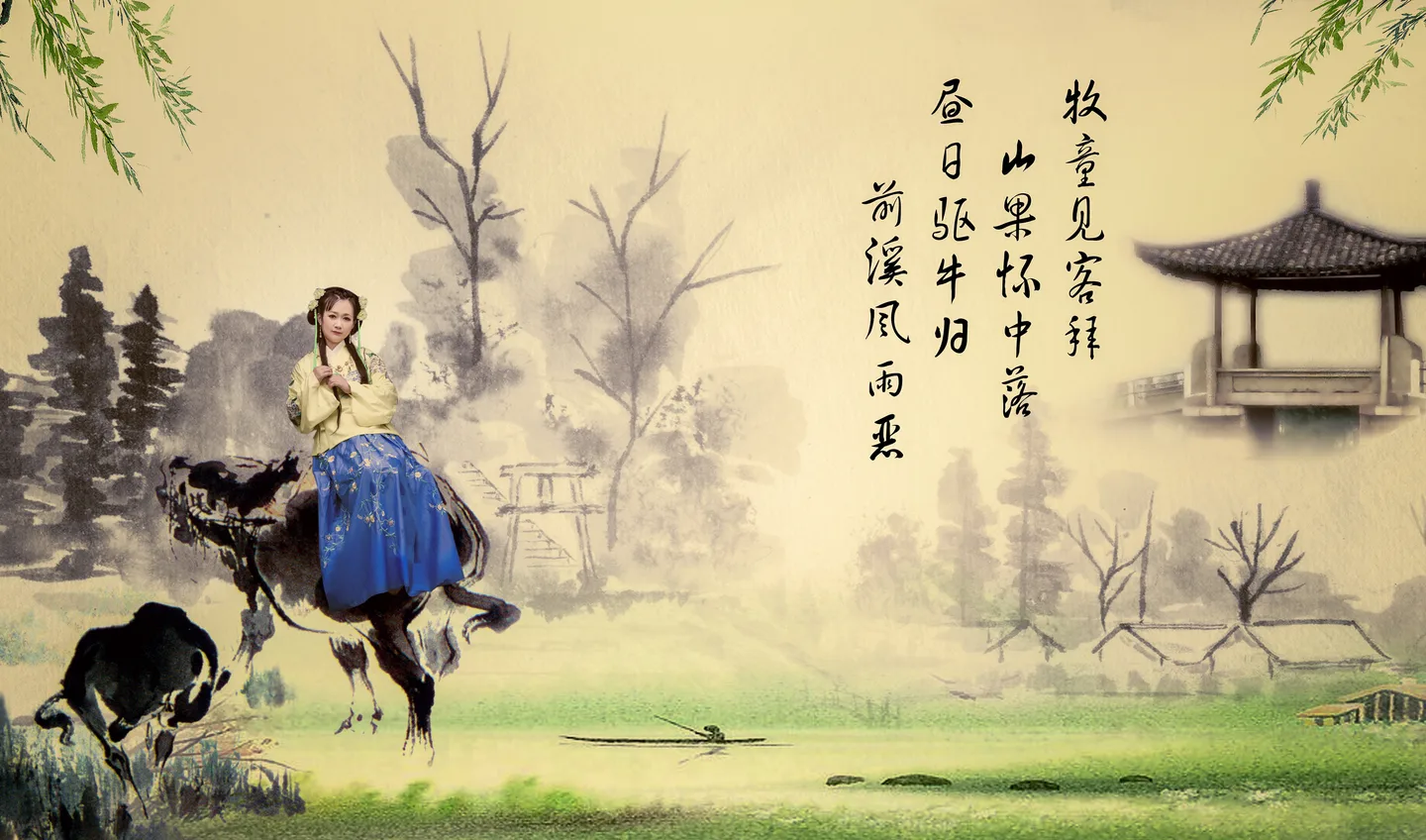 噗哈哈~~合成了牧童放牛图好赞,这脑洞厉害的……