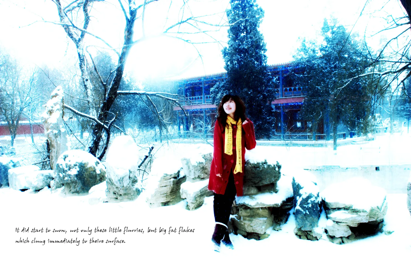 基调:典雅唯美 艺术化:轻微艺术化 俺也是搞摄影滴 一直不太重视后期 想跟大师学习下~这是雪天去古莲花池朋友给拍的片 麻烦大师帮我处理下 不用太考虑我的喜好 只想要个能代表大师水平的作品 希望大师们不要简单裁图调色打发我。。拜托啦~