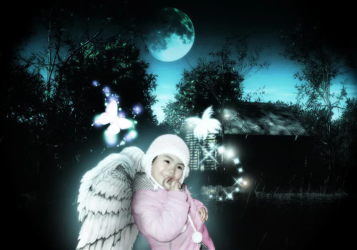 大师可以不可以帮我把俺妹妹弄成小天使呀 我好想看看俺妹妹长这两只翅膀的样子 期待呀 先谢谢了 用途:娱乐 基调:欢悦明快的 艺术化:轻微艺术化 背景:朦胧化