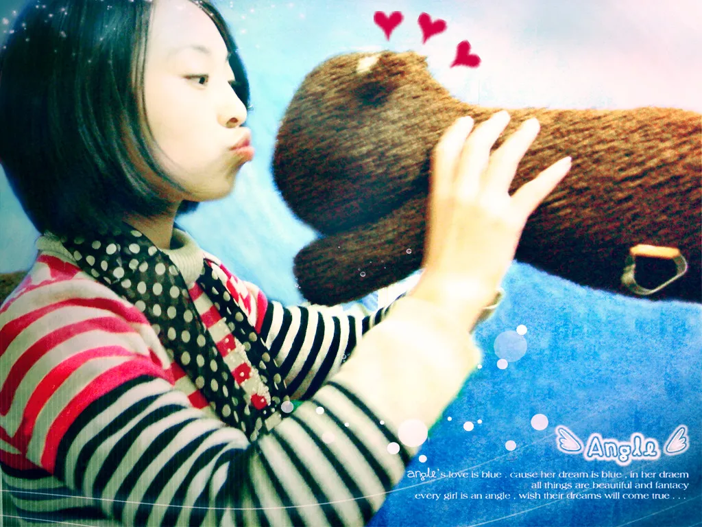 比原来好很多,就是我的脸色看着不太好,小熊头上的那三个桃心很可爱啊,加上把,呵呵!