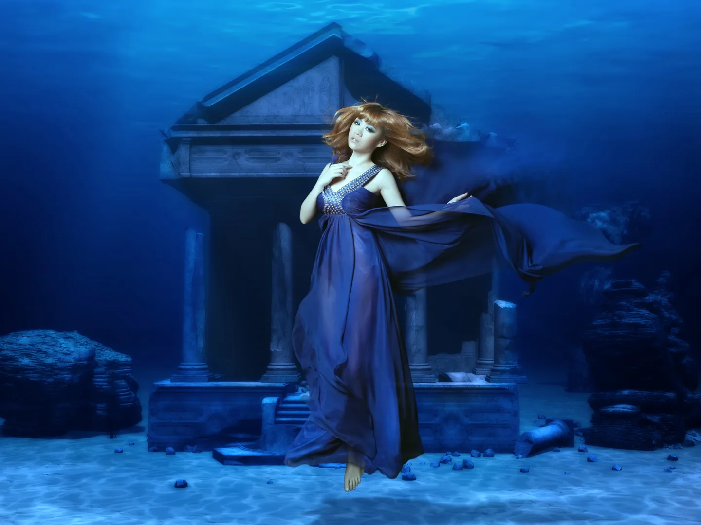 水下神殿里一片死寂,幽冥雅典娜的出现,在黑暗中带来了一片蓝光,漂动的裙摆,飞舞的长发,讲述着幽冥宫的寂寞……