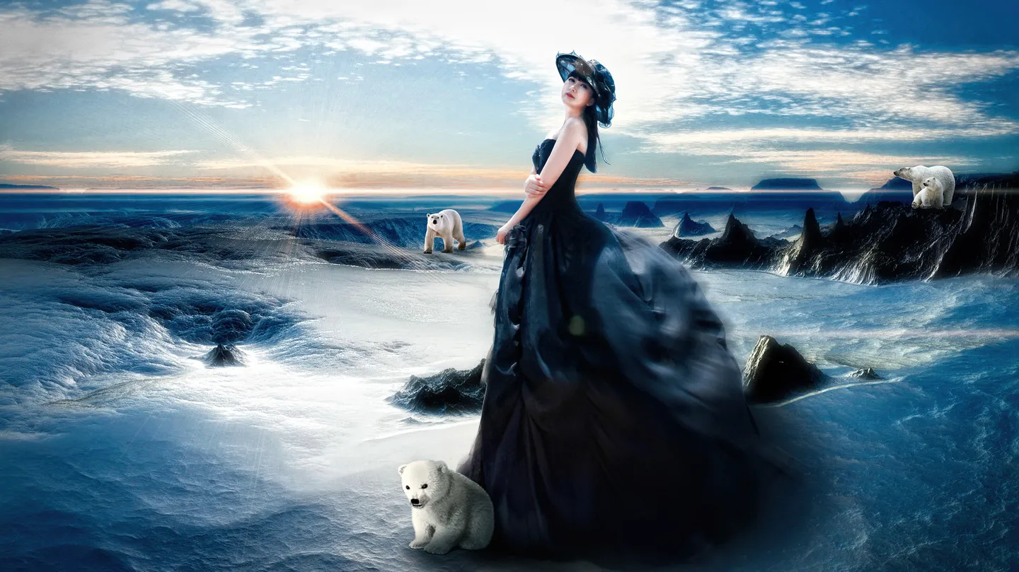 么么哒好美的合成啊!满地冰雪还有夕阳,北极熊萌萌哒!非常非常喜欢,谢谢月大神,开心带走大图